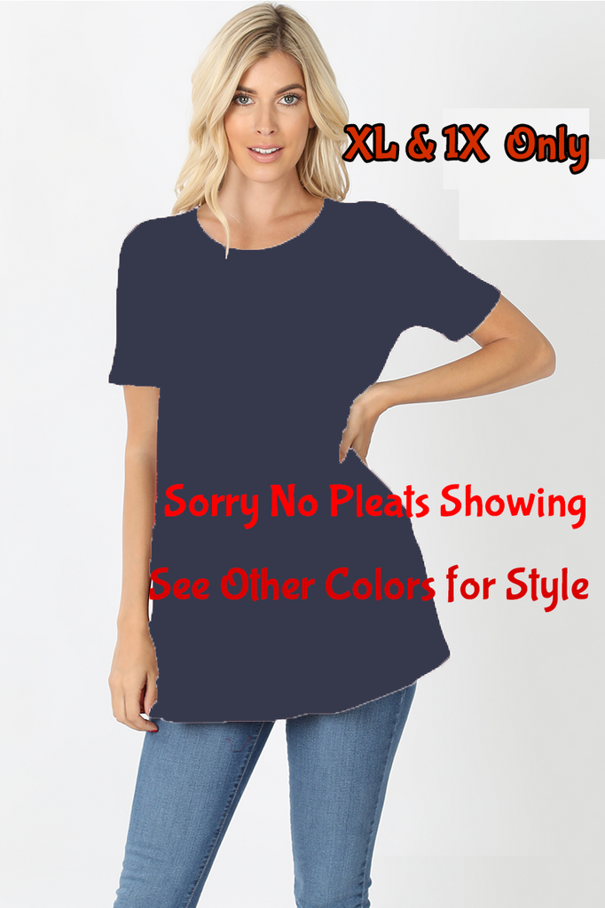 SHORT SLEEVE ROUND NECK PLEATED TOP
