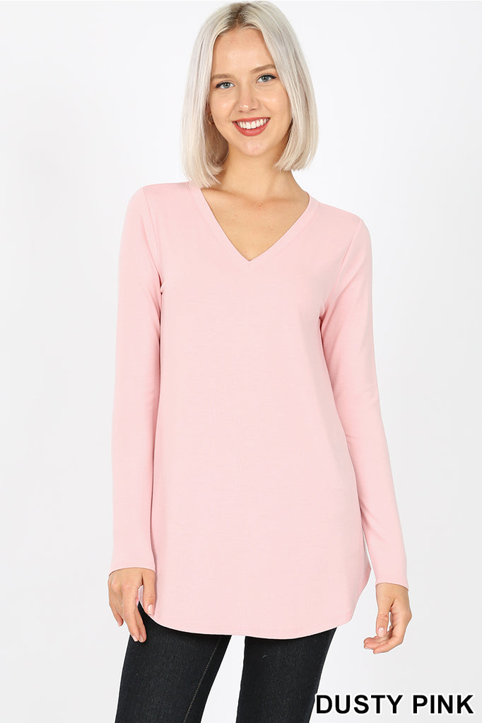 *LONG SLEEVE V-NECK ROUND HEM TOP