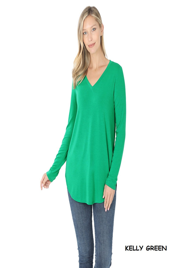5981 4/4S V Neck Round Hem TOP in KELLY GREEN