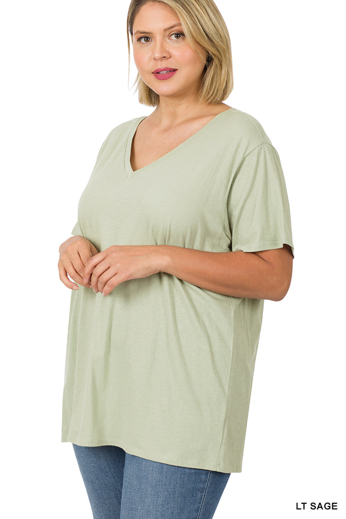 11176 1/4S V Neck Boyfriend Tee in LT SAGE