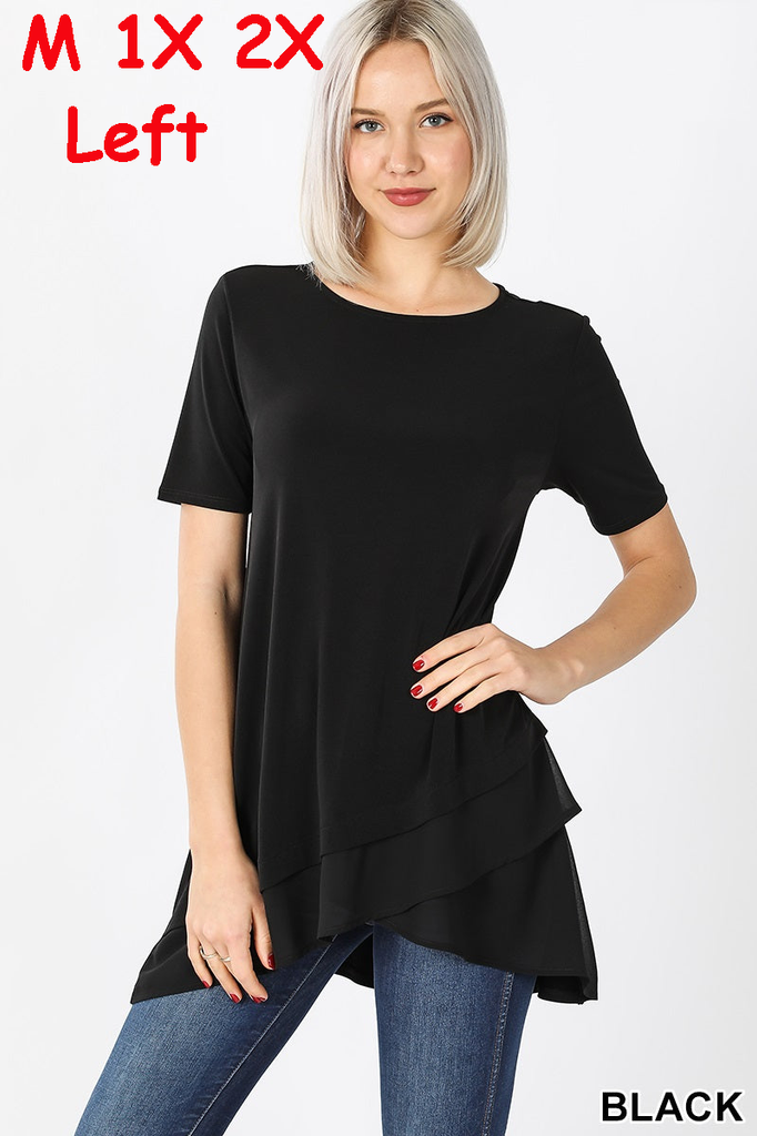 4282 1/4S Overlap Chiffon TOP in BLACK JV-N137A