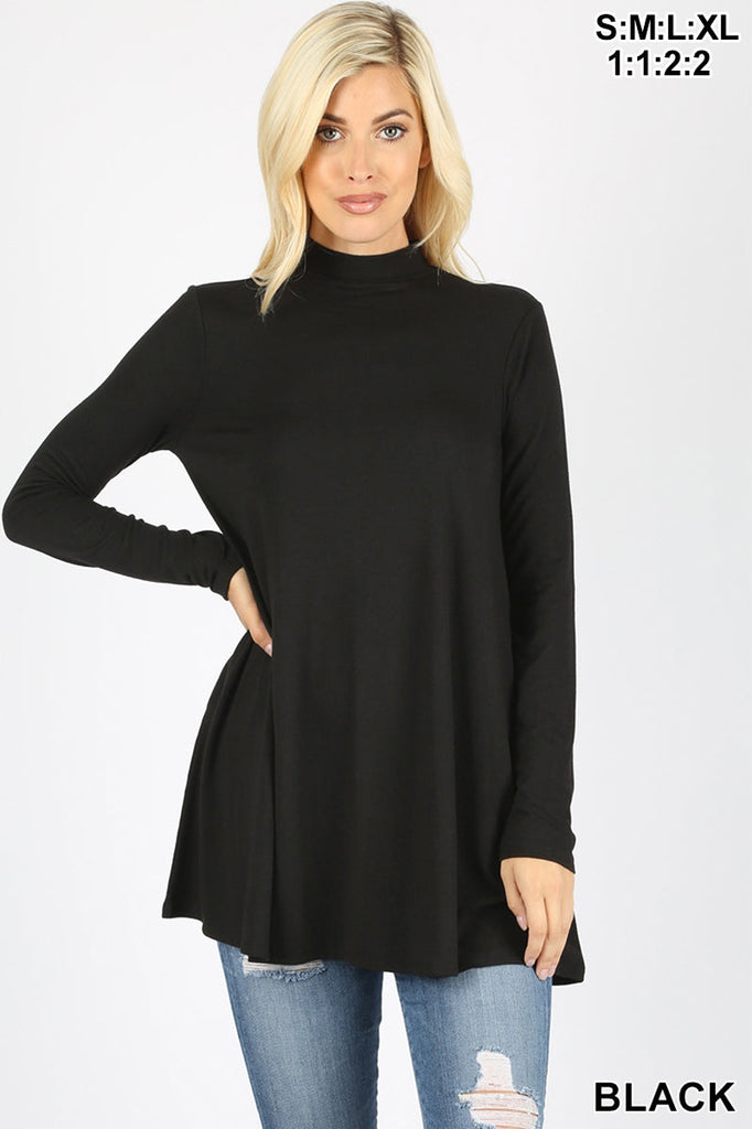 LONG SLEEVE MOCK NECK TOP WITH SIDE POCKETS