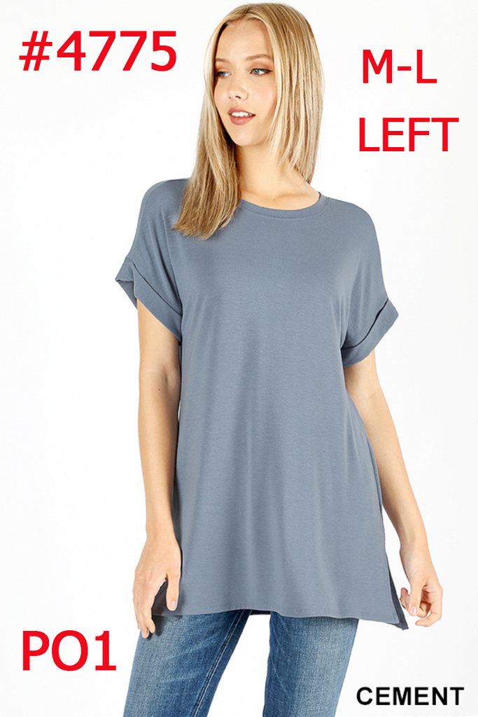 4775 1/4S Rolled R Neck HiLo Side Slit TOP in CEMENT