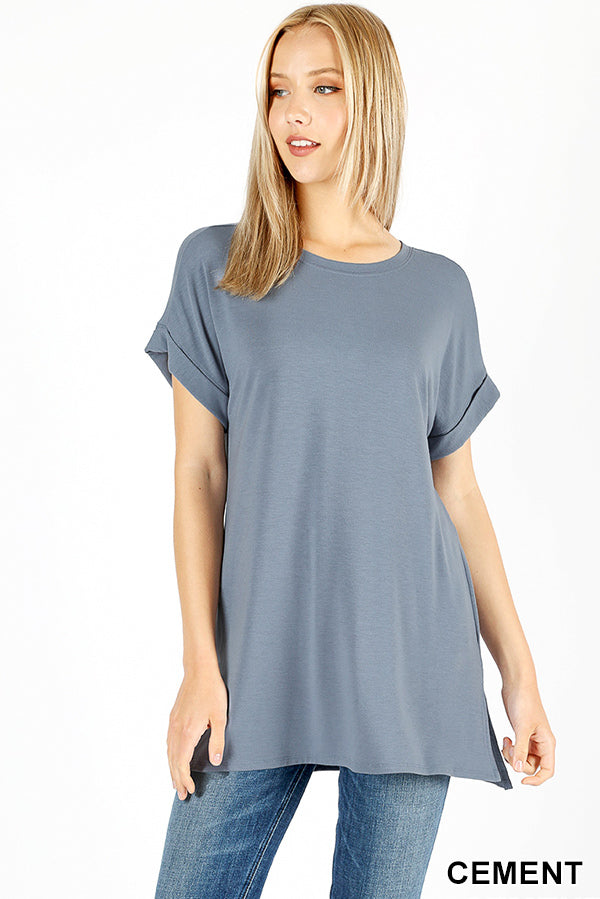 1/4S Rolled Sleeve High-Low Hem w/ Side Slit TOP