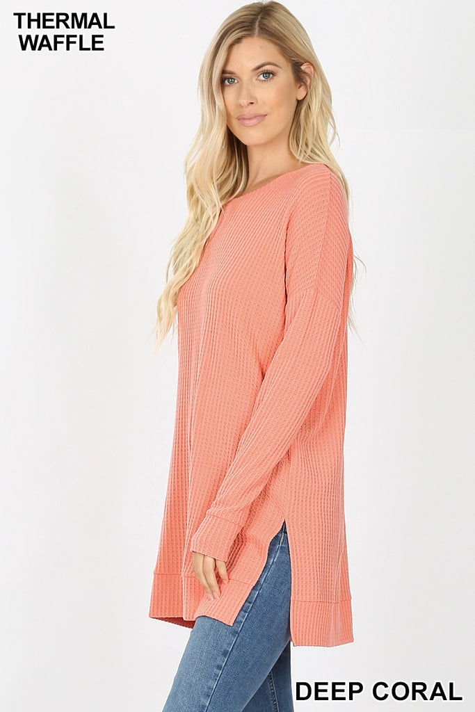 5894 4/4S Thermal Waffle R Neck SWEATERS in DEEP CORAL